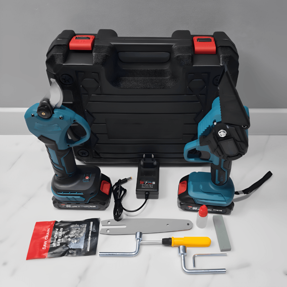 Opremljen sa dve visokokvalitetne baterije, set aku makaze i aku testera garantuje dugotrajne performanse i konstantnu snagu. Bez obzira koliko posla imate, možete biti sigurni da će vaš alat raditi besprekorno i pružiti vam vrhunske rezultate svaki put.
