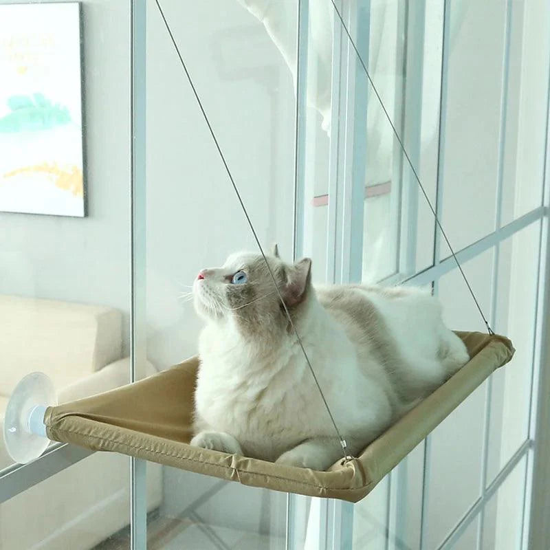 Mačke obožavaju da provode vreme pored prozora, prija im sunce i širok pogled. Iz tih razloga Vam predstavljamo krevetić koji bukvalno visi na prozoru, te čini savršen prostor za mace.