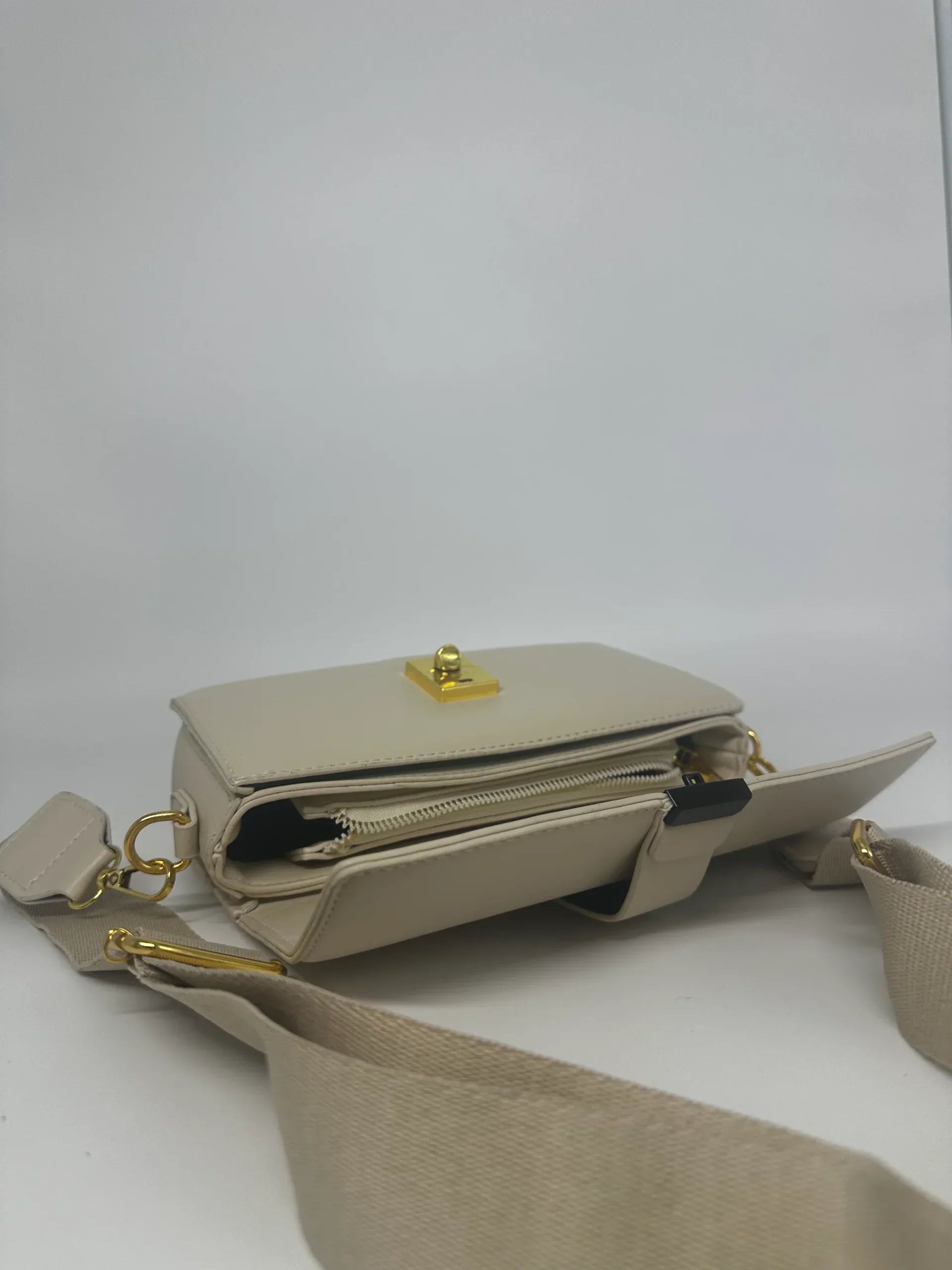 Širok, platneni kaiš podesive dužine, može se skidati sa torbe