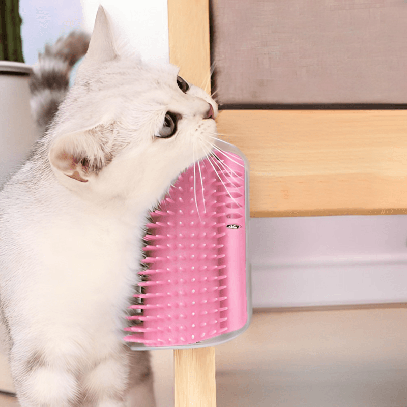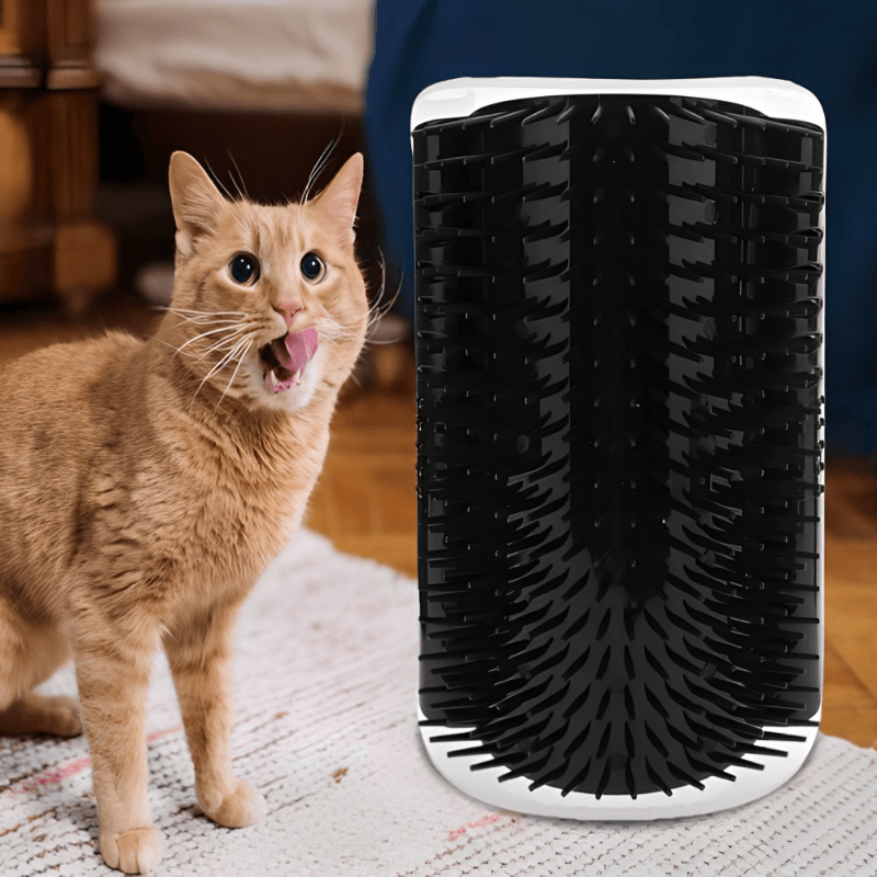 Dizajnirana u skladu sa životnim navikama mačke, pruža mački osećaj trenja, dok izdržljiva plastična četka uklanja slabu mačiju dlaku tokom trljanja.
